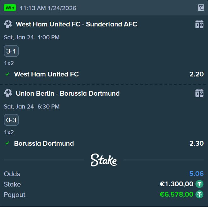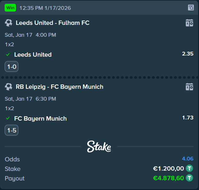 Tip: 2 Odds 1.25